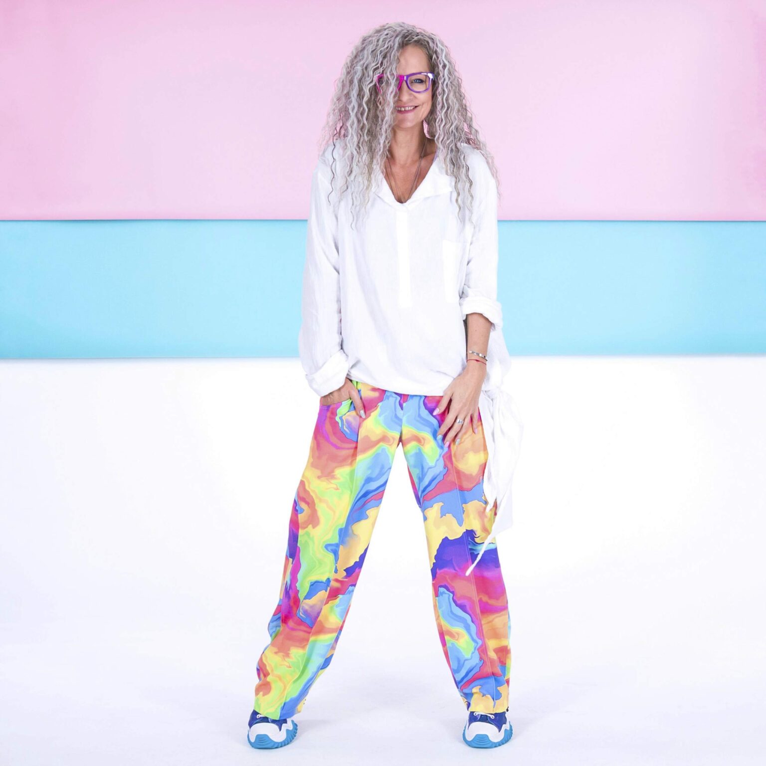 garnitur damski, garnitur szyty na wymiar, garnitur damski, garnitur, damski garnitur szyty na miarę, spodnie do garnituru damskie, kolorowy garnitur damski, komiksowy garnitur damski, polski producent, polska moda, polski producent odzieży damskiej, garnitur muukreacje