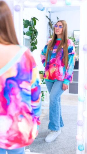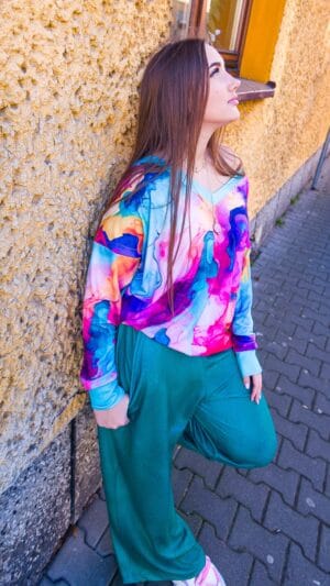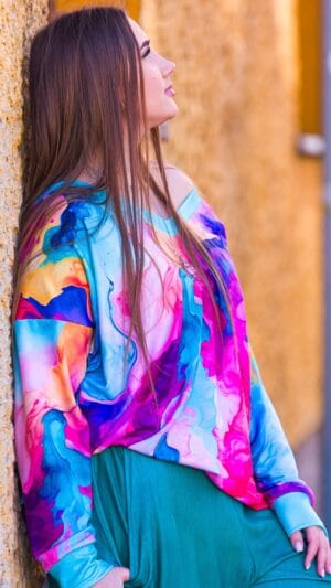 W każdym jaki natura wymyśliła… no dobra człowiek też czasami namieszał 🙂 Olga jest fanką psychologii kolorów i wszystkie printy jak i basic kleksy są tylko i wyłącznie w kolorach bUUdujących siłę Kobiet!