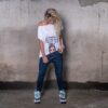 - Materiał idealnie nosi się w upalne dni – nie poci się i szybko schnie!