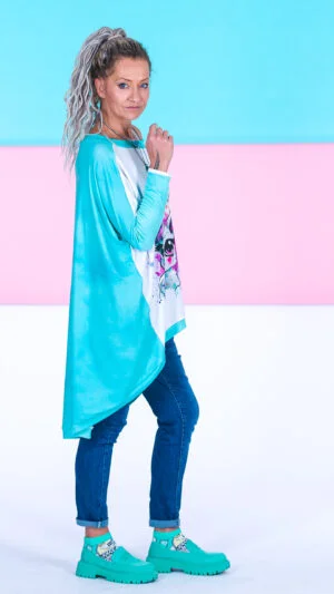 W każdym jaki natura wymyśliła… no dobra człowiek też czasami namieszał 🙂 Olga jest fanką psychologii kolorów i wszystkie printy jak i basic kleksy są tylko i wyłącznie w kolorach bUUdujących siłę Kobiet!