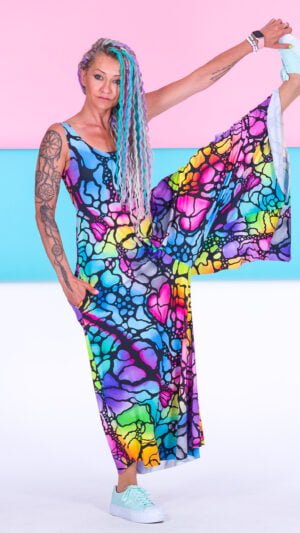 W każdym jaki natura wymyśliła… no dobra człowiek też czasami namieszał 🙂 Olga jest fanką psychologii kolorów i wszystkie printy jak i basic kleksy są tylko i wyłącznie w kolorach bUUdujących siłę Kobiet!