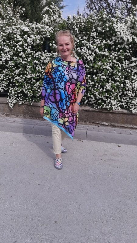 Przepiękna tunika, wspaniałe kolory, wyglądam jak zadowolona z siebie tęcza. Serdecznie polecam 🙂