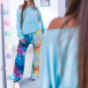 Miękka dzianina, szerokie nogawki i subtelny efekt rozporka sprawiają, że wyglądasz stylowo, a jednocześnie czujesz pełną swobodę ruchu.
