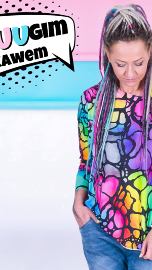 W każdym jaki natura wymyśliła… no dobra człowiek też czasami namieszał 🙂 Olga jest fanką psychologii kolorów i wszystkie printy jak i basic kleksy są tylko i wyłącznie w kolorach bUUdujących siłę Kobiet!