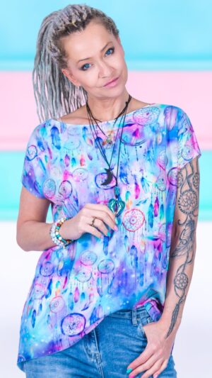 Kolory dodające energii, materiał idealny na lato, przewiewny, przjemny w dotyku, a krój? No cóż jeden z moich ulubionych. I co najważniejsze, nic się nie dzieje z materiałem w praniu.