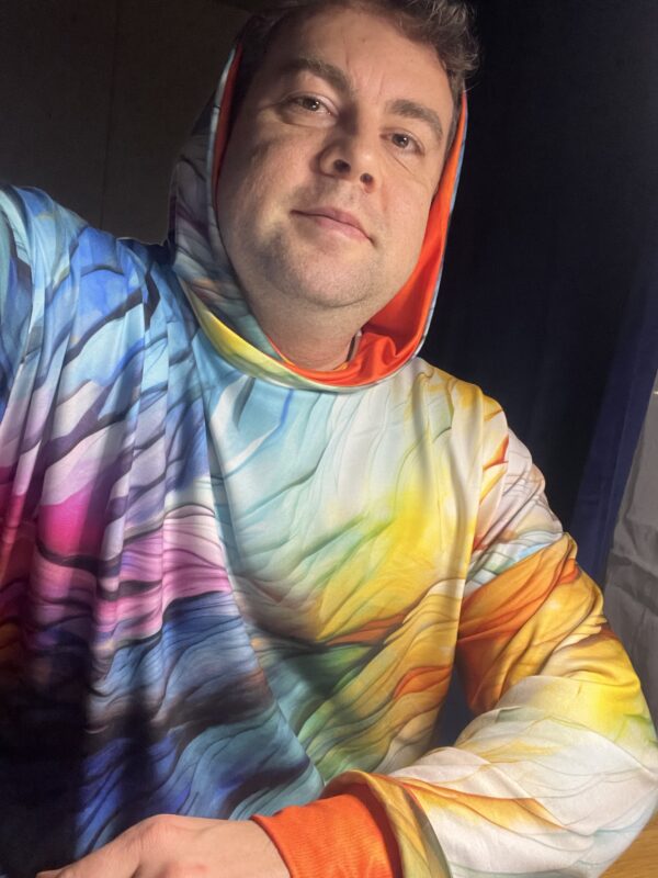 Piękna, kolorowa bluza uszyta na mój indywidualny wymiar. Od teraz nikt mi nie przyfika na osiedlu. Sztos.